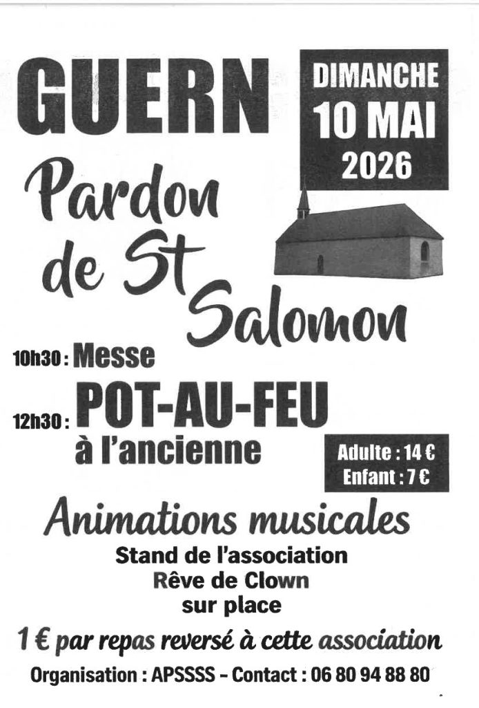 LE PARDON DE SAINT – SALOMON Le pardon de Saint-Salomon se tiendra le dimanche 10…