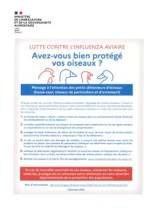 -claustration ou protection par des filets des oiseaux captifs et des volailles dans les basses-cours ;