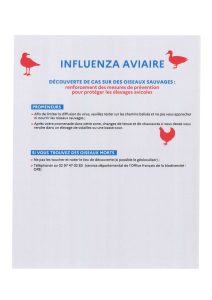 CIRCULAIRE PREFECTORALE – INFLUENZA AVIAIRE HAUTEMENT PATHOGENE (IAHP)