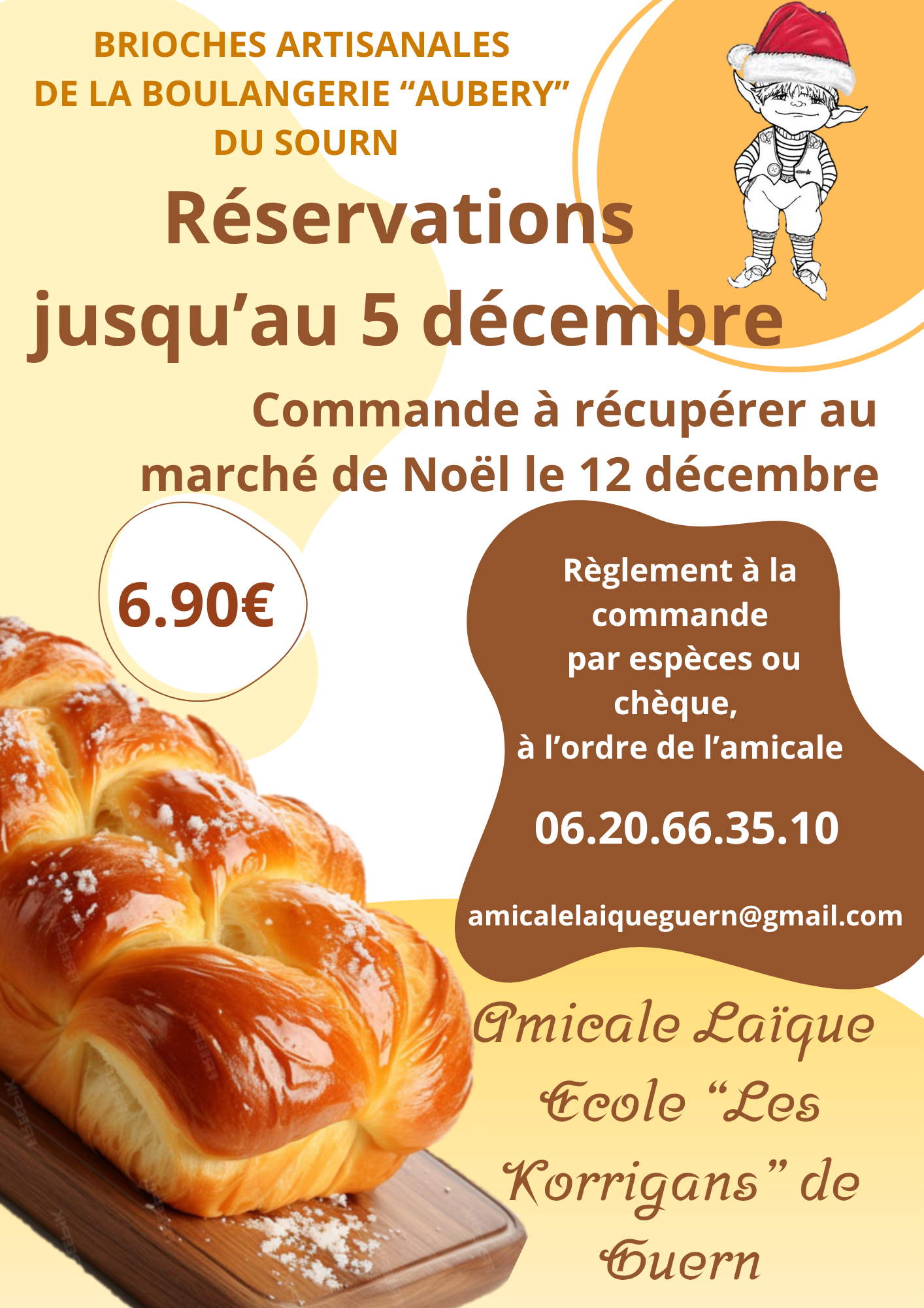 En partenariat avec la boulangerie “Aubery” de Le Sourn, L’Amicale Laïque vous propose de bonnes brioches à déguster!!!