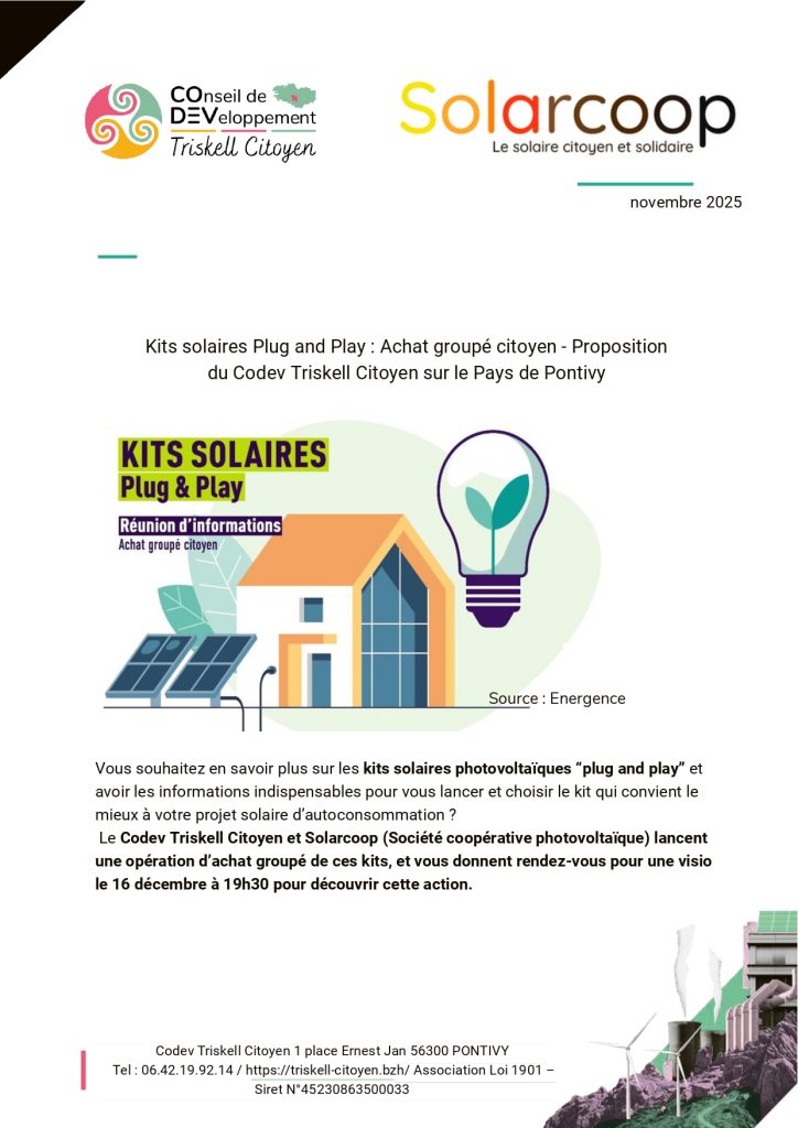 Dans le cadre de la nouvelle mission sur l’énergie citoyenne, un groupement d’achat de kits plug and play est proposé.