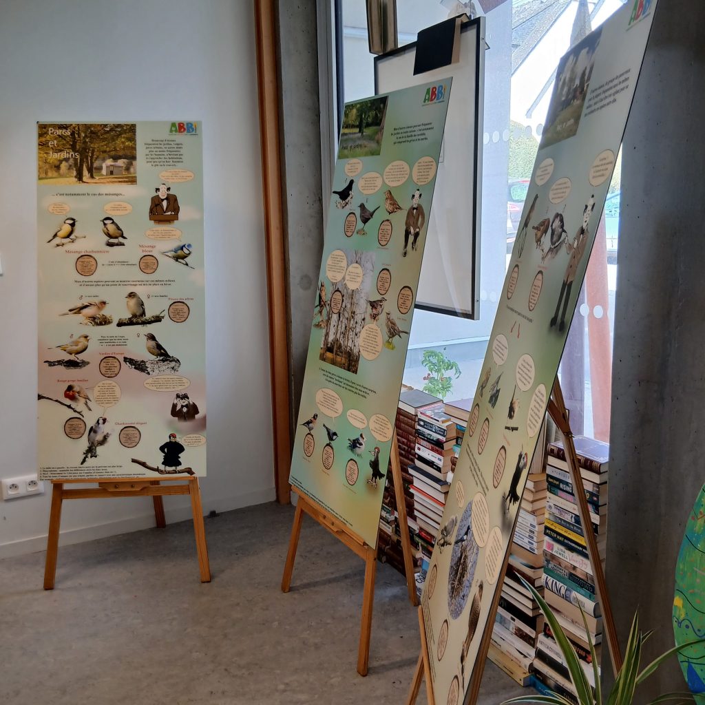 Après une balade dans la forêt à la recherche des oiseaux qui peuplent notre environnement immédiat, découverte de l’exposition dédiée à ce thème à la médiathèque!