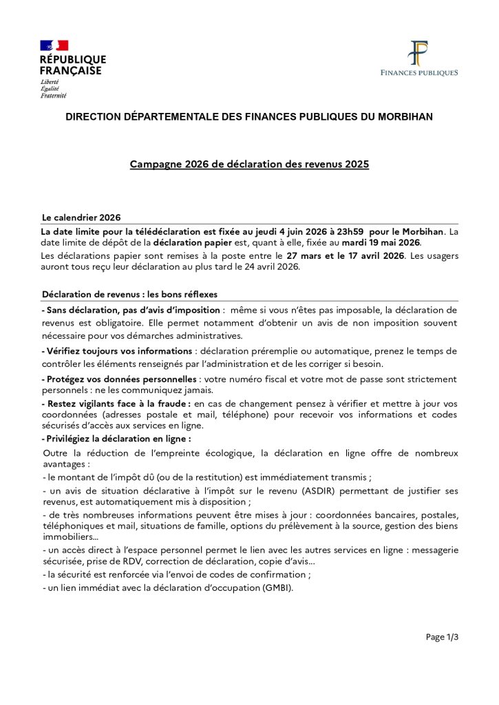Voici la présentation synthétisée de la campagne 2026 de déclaration des revenus 2025.