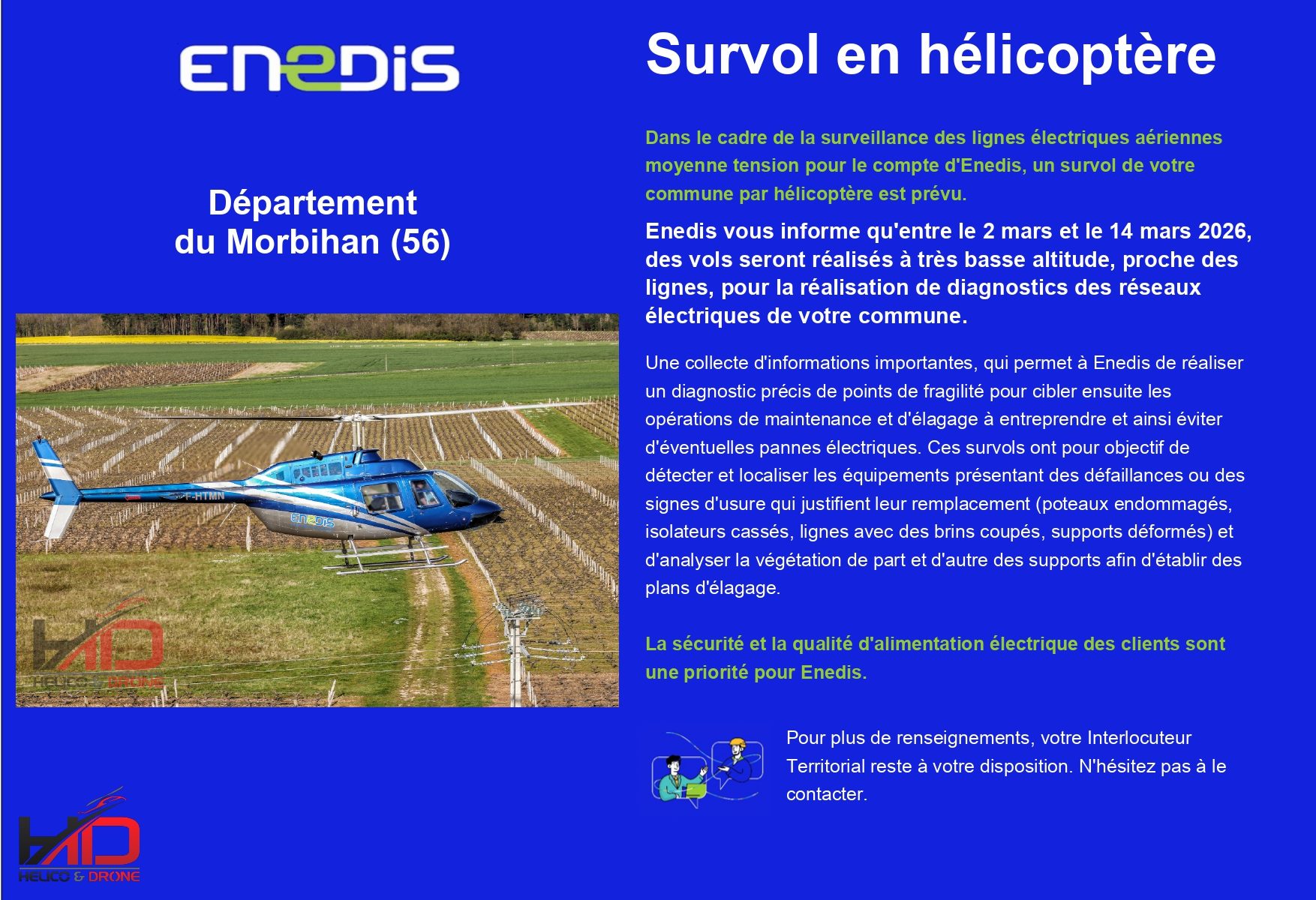 Dans le cadre de la surveillance des lignes électrique d’ENEDIS, un hélicoptère survolera la commune à très basse hauteur.