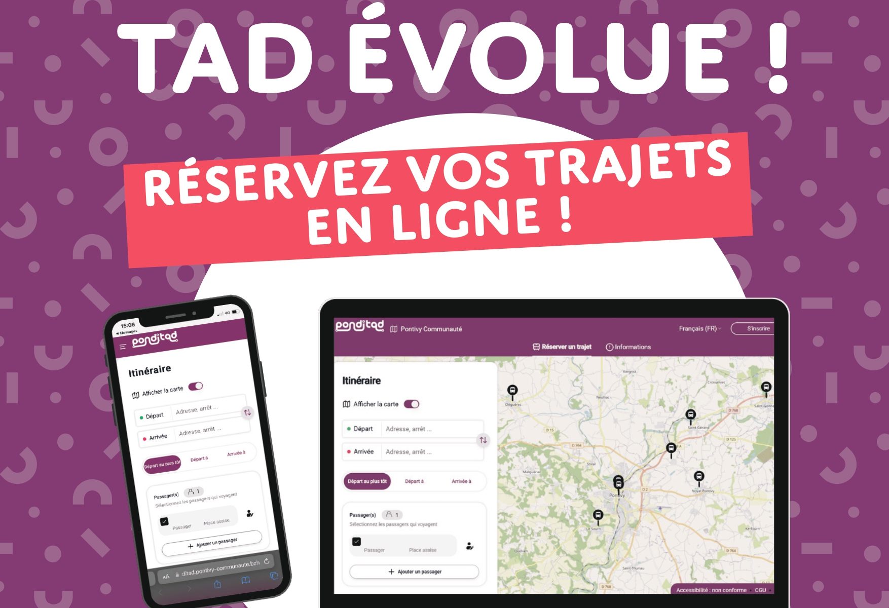 * En plus du téléphone, il sera possible de réserver ses trajets via le site internet de réservation Ponditad. https://ponditad.pontivy-communaute.bzh/login
