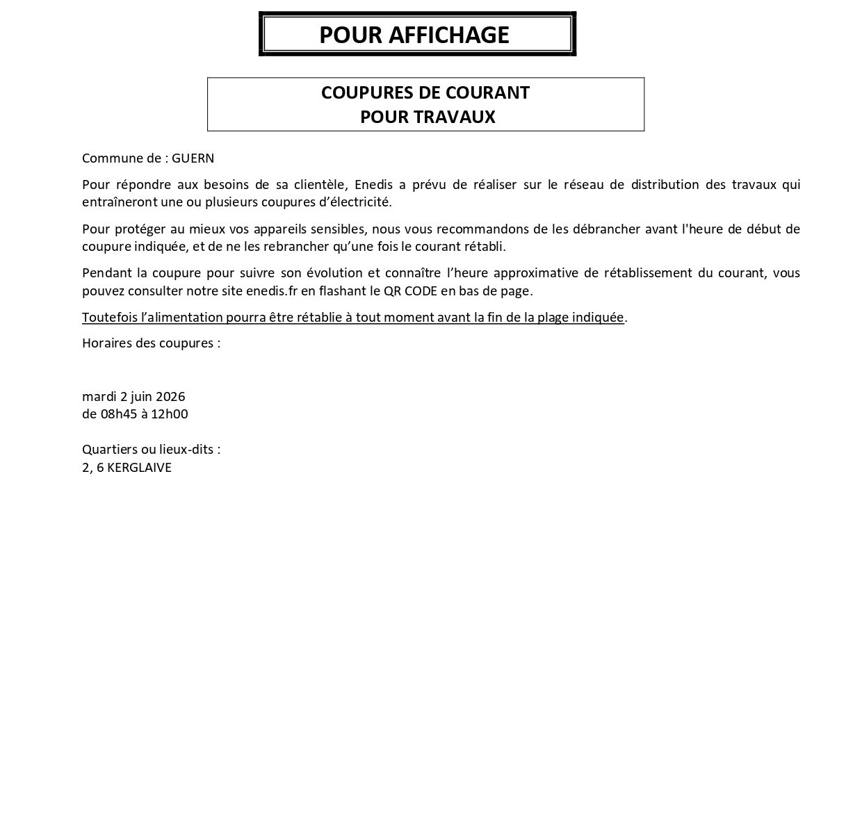 Coupures de courant du mois de Juin 2026